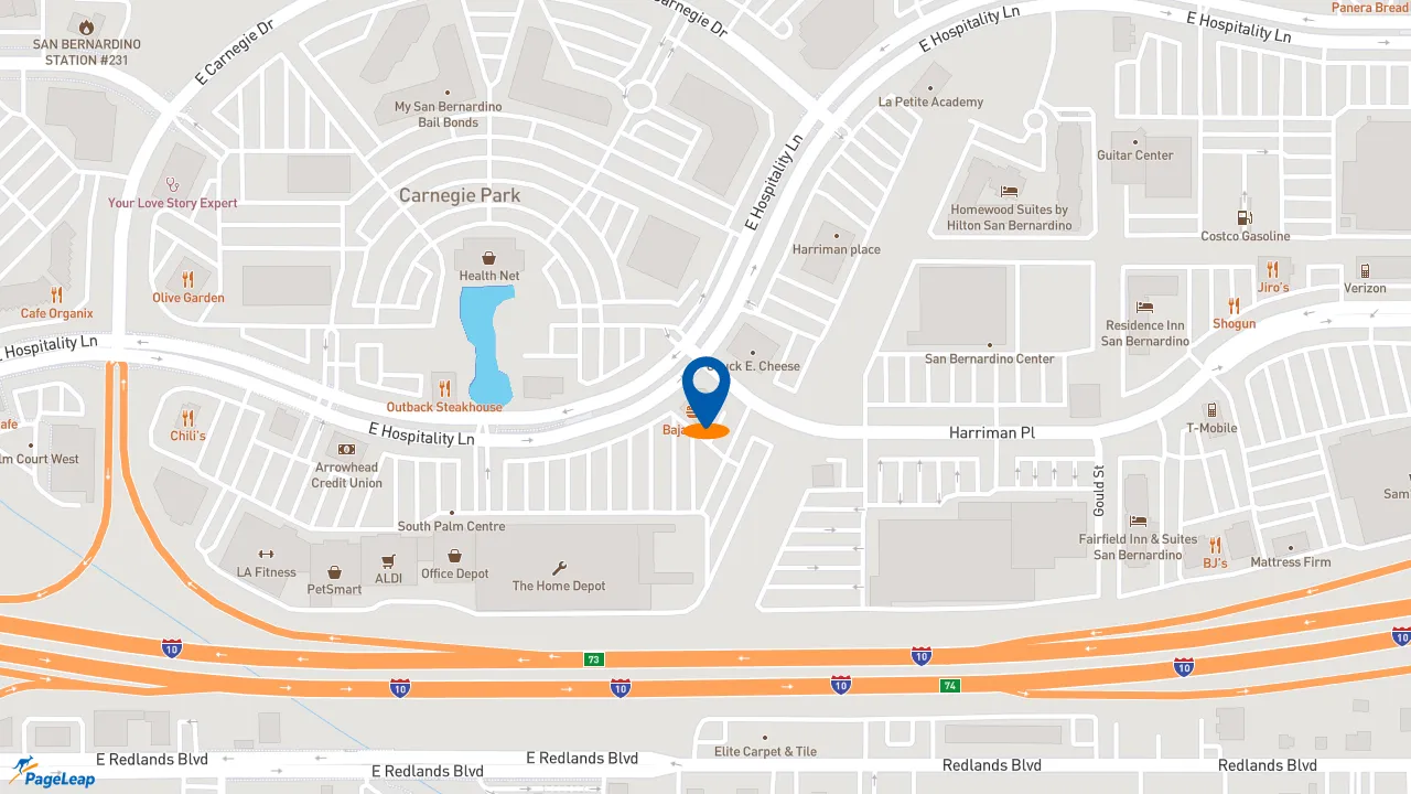 Baja Fresh can be found at 745 E Hospitality Ln, right in the heart of San Bernardino, California.